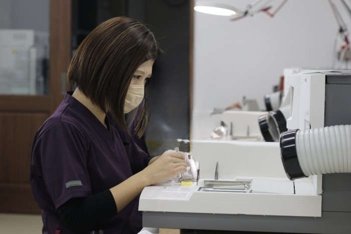 研究所作業風景 弊社では、女性の作製者を中心に、病理標本作製をしています。きめ細やかな対応ができる標本をお届けすることで、GLP施設として、信頼性のある病理標本を作製しております。 Web会議対応 会議室 静脈認証対応 資料保存室 静脈認証対応 資料保存室